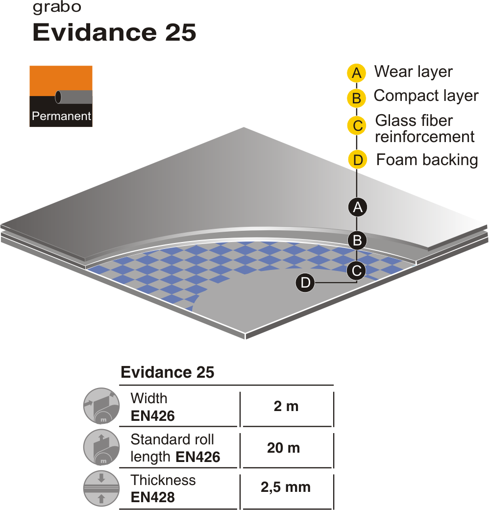 Evidance 25 is een slijtvaste dans/event vloerbedekking met anti-slip oppervlak voor dans, evenementen en shows.